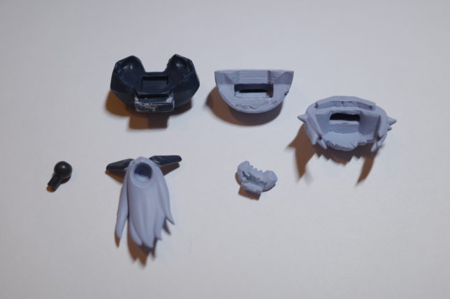 そのままラッカー塗料だと剥げそうでしたので、プライマーサーフェイサーをあらかじめ頭パーツに吹きます。専用のレベリング薄め液が必要とのことなの併せて用意した方がよさそうです。