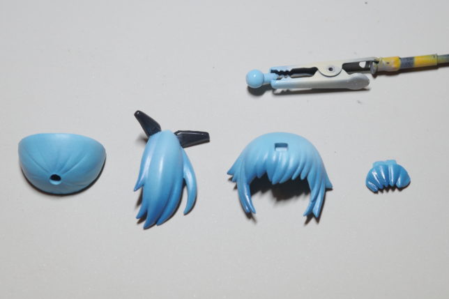 今回も髪色は瞳の色に合わせて三色使って調色し、グラデーション塗装しています。